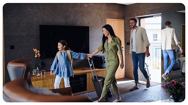 - Families ordering room service, playing in bed, or at the pool. - Travelers enjoying rental houses/apartments.