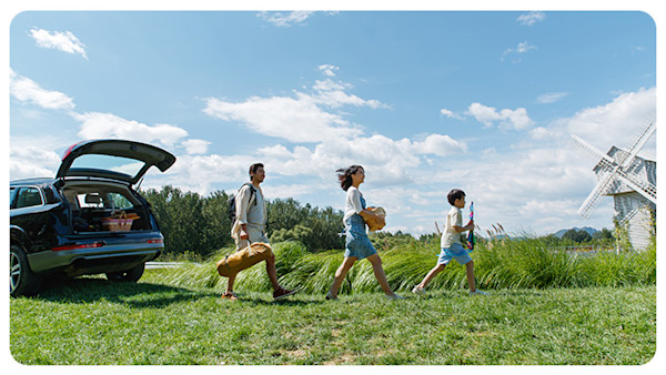 - Families, friends, or individuals unloading outdoor equipment from their cars, e.g., mountain bikes, skis, snowboards, etc.